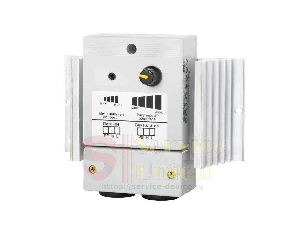 Для подключения необходимо отвернуть винты крышки и закрепить провода питания и вентилятора в клеммах по схеме на корпусе. Предусмотрена регулировка начальных минимальных оборотов (см. инструкцию). |